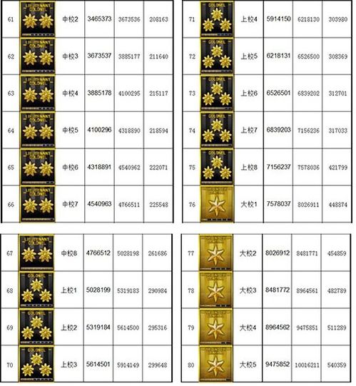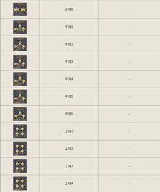 跟着军衔等第的升高,军衔图标的计划也变得愈加纷乱和精巧。比方,新兵阶段也许只显示一个简便的标记或符号,而到了元帅阶段,则会展现出更为雅致且富裕标记意旨的图案,如盾牌、勋章等元素,彰显出高级别军衔的奇异魅力。